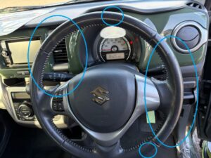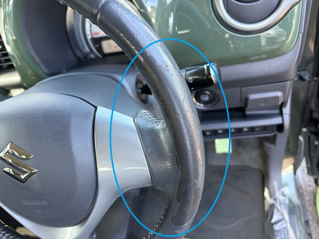 右側持ち手箇所が特にひどくハガレが進んでいます、あまり行いたくありませんがクリーニングを行いながら
