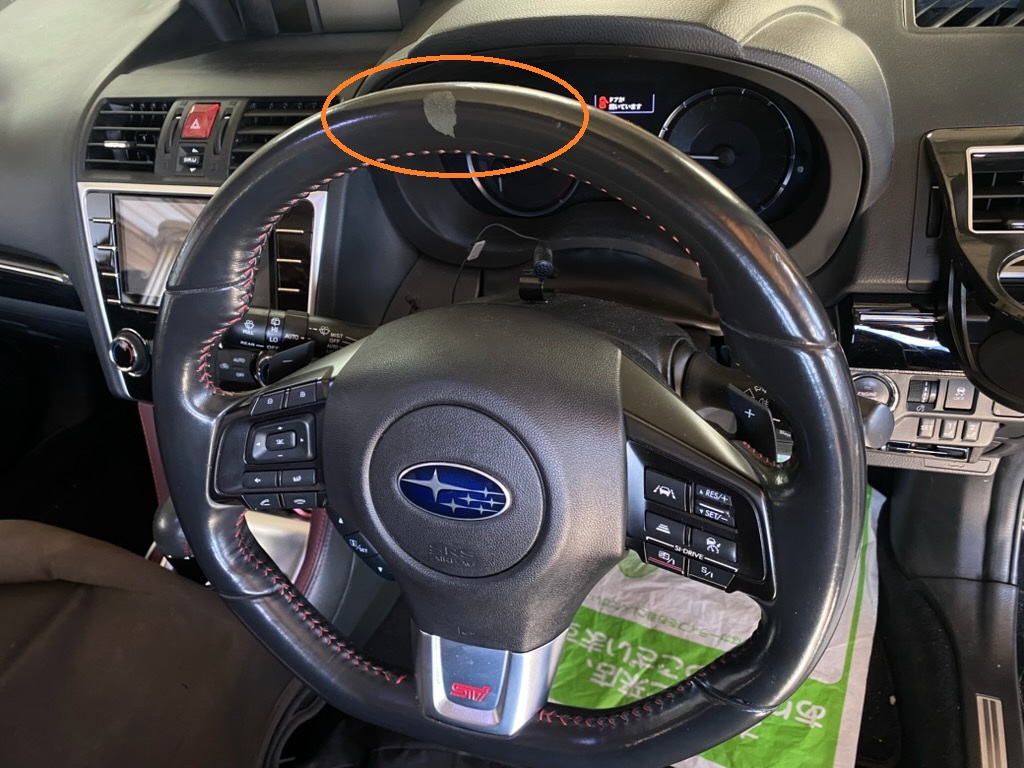 上部センター箇所のハガレをリペアします、状態はそれほど悪くはないのですが、実際に見える剥がれと他にも剥がれかけ部分があり