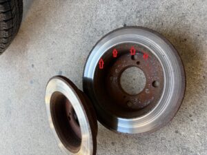 こうなっていたら交換または研磨が必要になります、あわせてブレーキパッド交換もおすすめします。