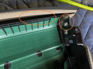 エアバックが展開できるように造られている為、劣化により樹脂部分が非常に薄いため固定は工夫が必要です