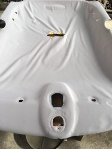 この場合は、天井の張替えか、交換でしか修理方法が有りません、当店では一度ヘッドライニングを車外に取り出し、新しい生地を張り替えることで対応できます。