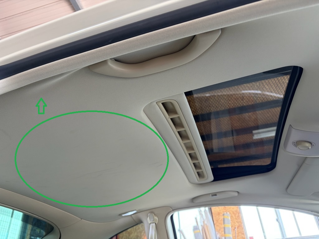 フロント付近とサンルーフ後部付近の生地浮きが目立ち始めたタイミングです