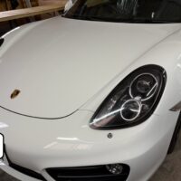 ポルシェケイマンS 左ヘッドライトクラック除去とコーティング・ドアトリム浮きリペア